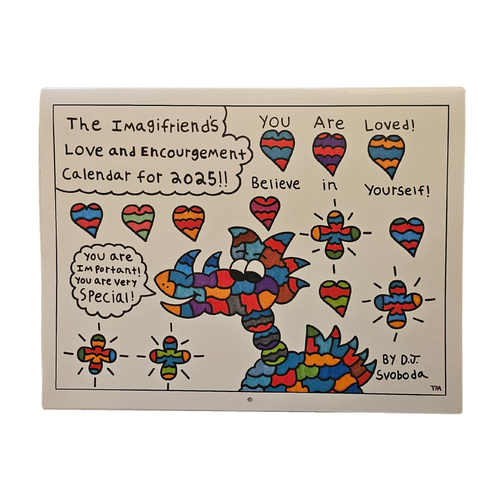 From books featuring the adventures of the Imagifriend gang, to coloring books, tee shirts, coffee mugs, note cards and more, DJ's artwork carries a truly positive message.